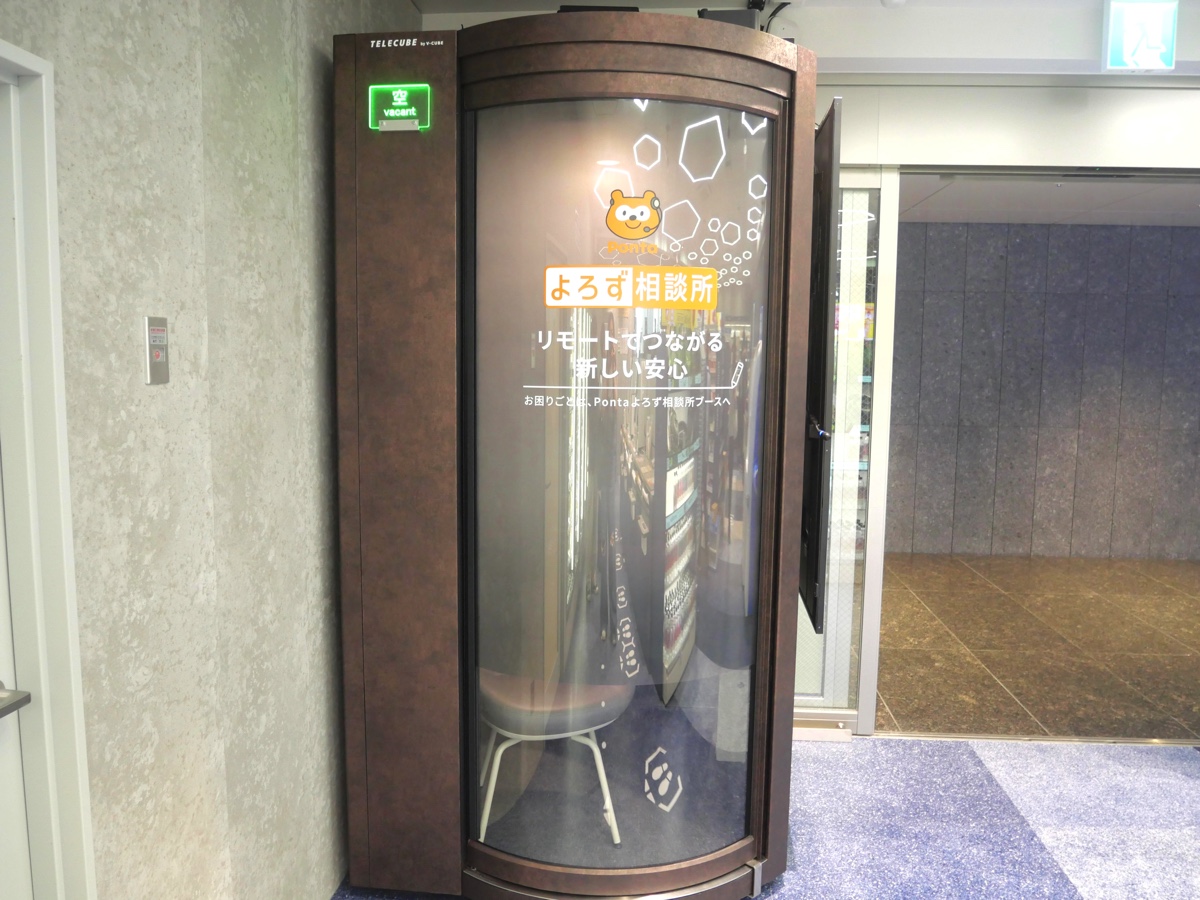 そういった側面での取り組みのひとつに、この「Ponta よろず相談所」がある。店舗の一角に構えている大きなボックスのなかを除くと、AIコンシェルジュが出迎えてくれた。