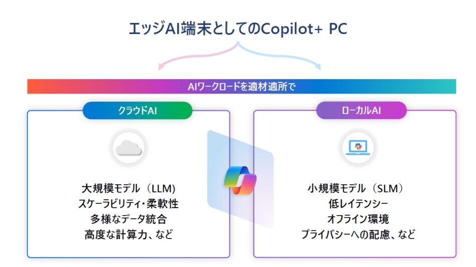 マイクロソフトは企業におけるAI利活用への関心を背景にCopilot+PCを推進中だ(現在のCopilot+PCの規定はCPUパッケージの中に40TOPS以上のNPUが含まれていることが条件なので、今回のラインナップではAMD CPUのみ対応する)。