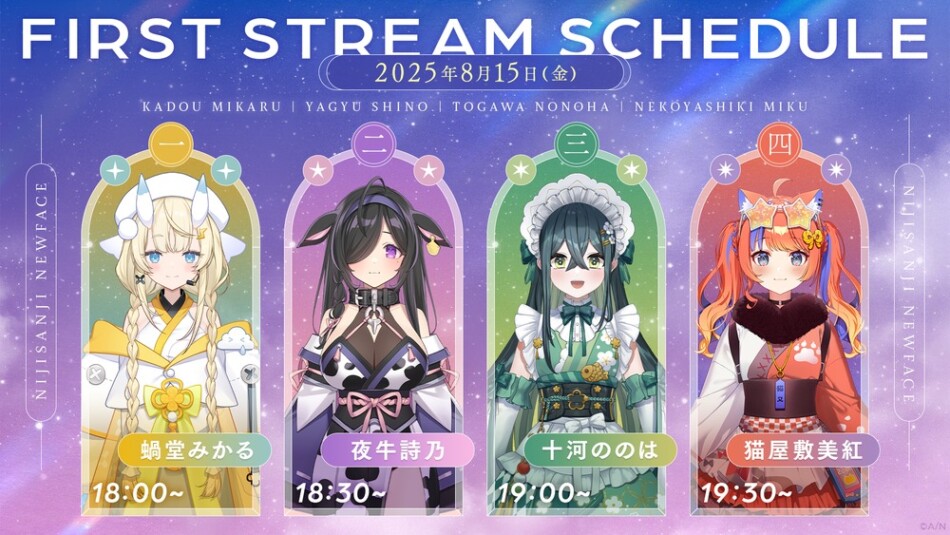 Xアカウントは8月14日からスタート、初配信は8月15日18時からリレー配信で行われる。そして20時10分からは各メンバーごとの歌ってみた動画の公開もリレー形式に行われ、20時50分にはデビュー楽曲「僕に贈る歌」のMVプレミア公開も行われる。