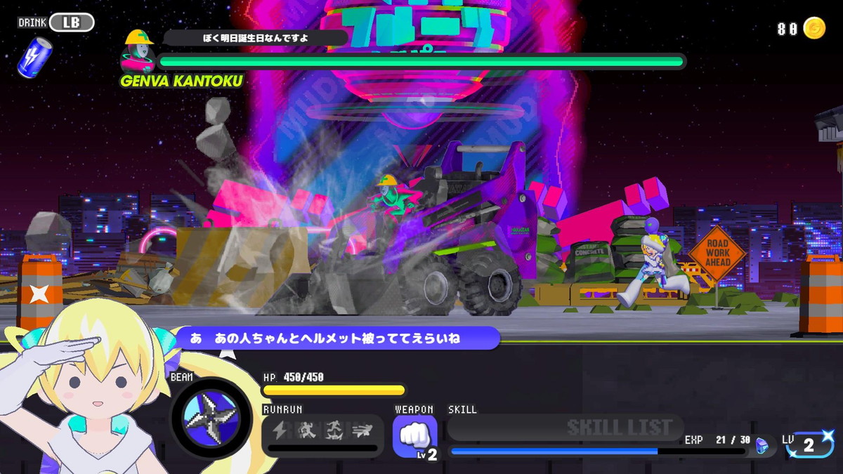 本作は次元少女「亜空間こねる」と、プレイヤーの分身かつ彼女の意識が乗り移った戦闘用アンドロイド「ソクラテス」で1つの身体を共有。シンジュクシティに突如現れた「ヘイトフルーツカンパニー」と戦うという設定だ。「亜空間こねる」を演じるのが、声優の小原好美さん。ゲームがはじまると同時に彼女のボイスが響き渡り、ありとあらゆる場面で可愛らしい反応を見せてくれる。この「亜空間こねる」という少女が本作の最大の特徴であり、魅力と言っていいだろう。