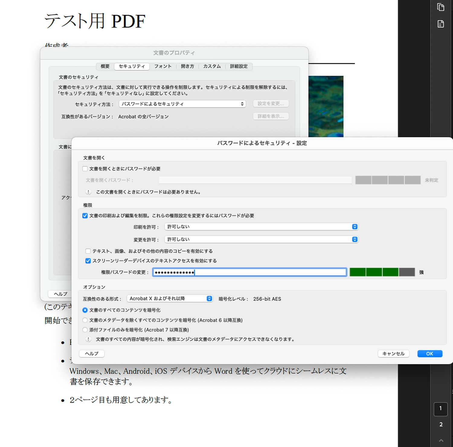 これを利用すると、〈PDFを保護〉から該当するPDFファイルに対して各種制限をかけることができる。セキュリティ方法はパスワードの設定が最も簡易的だ。閲覧自体を制限できるだけでなく、内容の編集、印刷、内容コピーなど、制限する項目を細かく設定できるので、意図しないPDFの編集や改ざんを防ぐことができる。