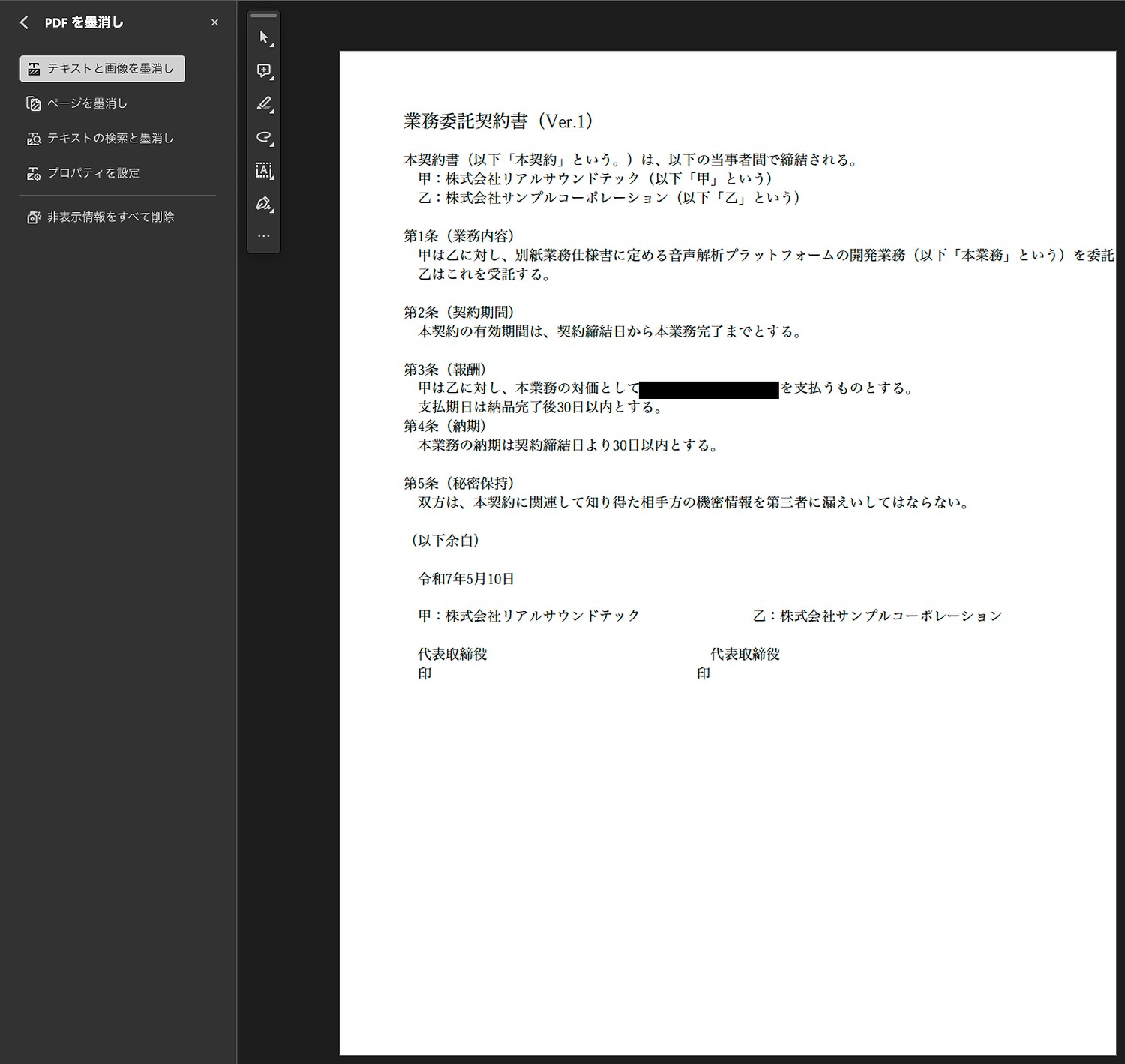 まず〈PDFを墨消し〉機能だ。こちらはテキスト・画像を問わず、機密情報や個人情報を“完全に”削除する際に使用する。“完全に”とはどういうことか?