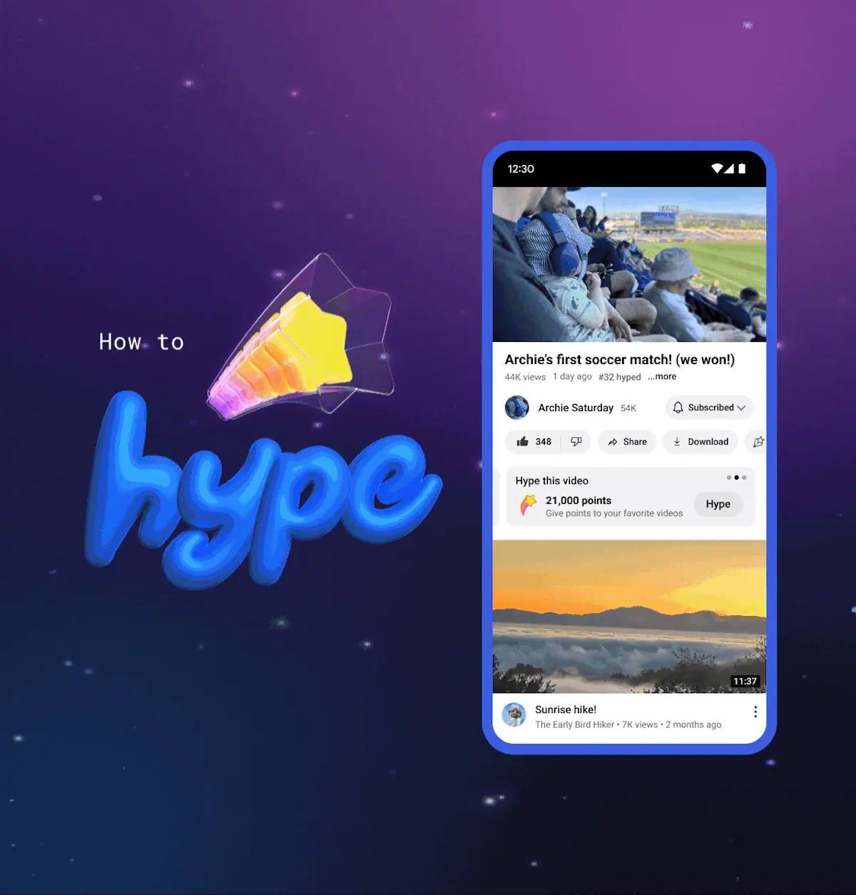 ユーザーは、従来の高評価に加えて、公開から7日間の動画をハイプできるようになる。週3回まで無料で利用でき、ハイプされた動画はポイントを獲得する。クリエイターのチャンネル登録者数に応じてボーナスポイントが自動的に付与されるそうだ。チャンネル登録者数が少ないほどボーナスポイントが大きくなるため、小規模なクリエイターのコンテンツがユーザーの目に触れる機会が増えるという。