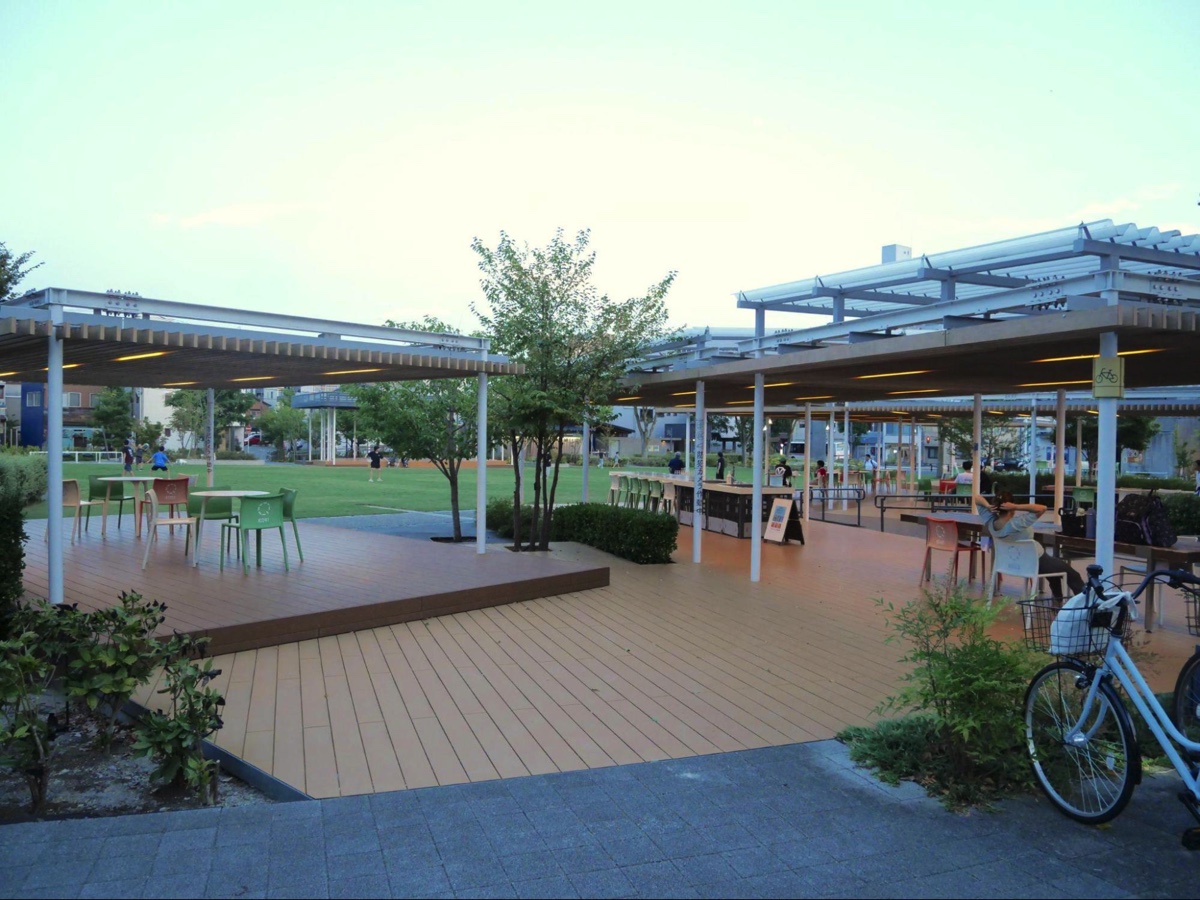 動画内でもメンバーが「おっしゃれ〜」と言っていた通り、『籠田公園』は令和元年に1年かけリニューアルされたようで、テラス席も併設されている“おしゃれ公園”だった。