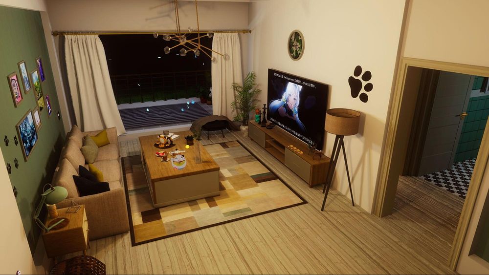猫 The Sappinessの公式ワールド「Nekothe's house」は、彼女が配信を行う背景空間をワールド化したもの。比較的こじんまりとした間取りの家で、動画プレイヤーやオリジナルゲームなどが設置されたチルワールドとなっている。普段使いのくつろぎスペースを兼ねたファン向け聖地として、ちょうどいい塩梅だ。
