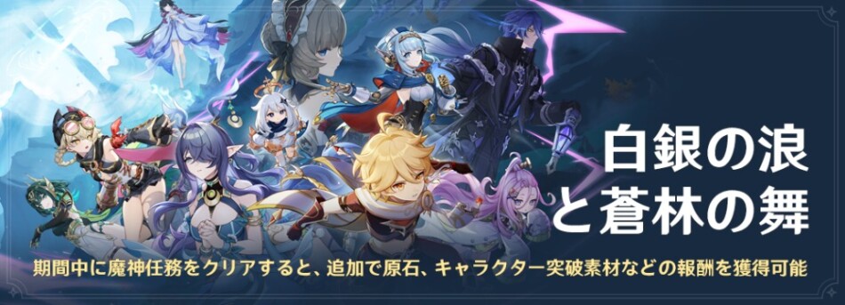 魔神任務 空月の歌・第一幕、第二幕も解放される。こちらも期間中に対応する魔神任務をクリアすると、原石、キャラクター突破素材、キャラクター育成素材、ナド・クライ地域の特産品などの報酬を獲得できる。