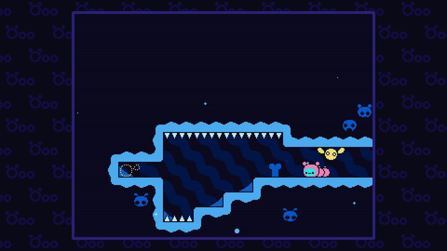 イモムシにできることは、爆弾を生成し、その爆風に乗って上下左右に飛び出すことだけだ。爆風にダメージはなく、生成にも制限はない。トゲにぶつかってやり直しになることはあるが、チェックポイントは至る所に置かれているので、アクションが苦手でクリアできないということはないだろう。