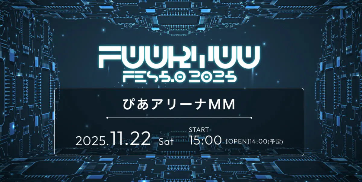 クオラスは、リアルとバーチャルが融合するフェス『FUURYUUFES 5.0 2025』を、11月22日にぴあアリーナMMで開催すると発表。第1弾出演アーティストを解禁した。