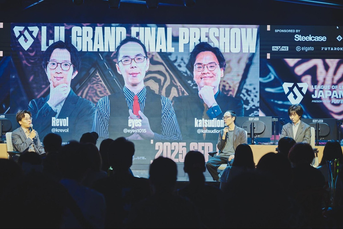 『LJL 2025 GRAND FINAL』は『LJL』でお馴染みのキャスター陣・katsudion、eyes、Revolによるプレショーからスタートした。プレショーの内容は「LJL 2025 AWARDS」と年間振り返り、そして決勝戦の事前予想で構成された。