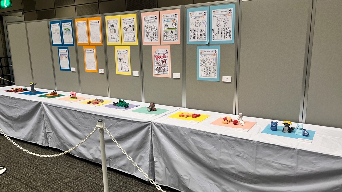 販売グッズの展示だけでなく、ホロスターズのメンバーによる「夏休みの宿題」として、手描きの絵日記や粘土で作った立体造形の工作が展示されているスペースもあり、開始前から熱心なファンが列を成しており、大盛況だった。