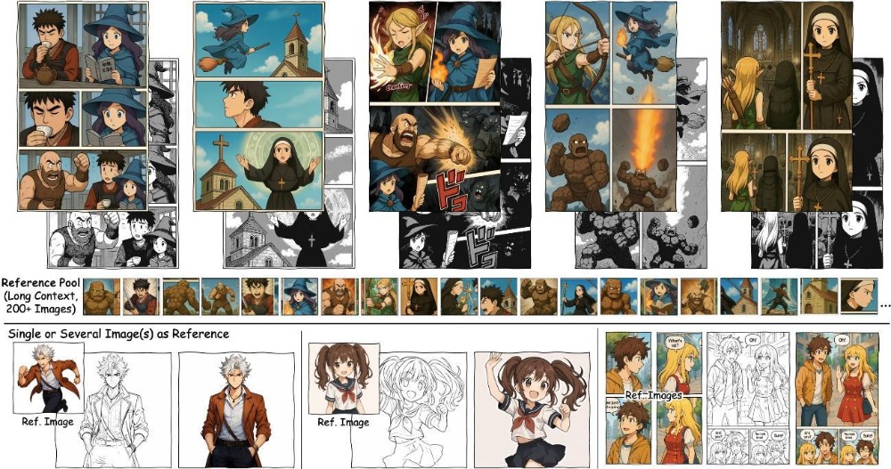 中国・清華大学と中国大手IT企業・Tencentらの研究チームは、大量の模範画像にもとづいて、線画マンガを高品質にカラー化するモデル「Cobra」を発表した(※2)。このAIは、最大200枚の模範画像からカラー化するにあたっての彩色スタイルを学習することで、従来のカラー化AIの性能を大きく凌駕した。