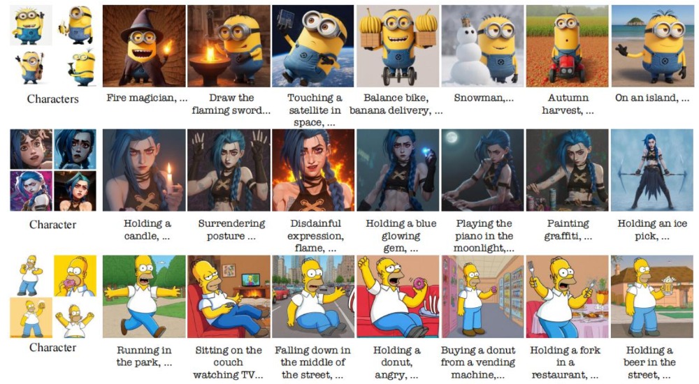 TikTokを運営するByteDanceらの研究チームは、数枚のキャラクター画像を入力したうえで、さらに簡単なストーリーをテキスト入力すると、入力したキャラクターが登場するストーリー画像を生成する「IP-Prompter」を発表した(※3)。