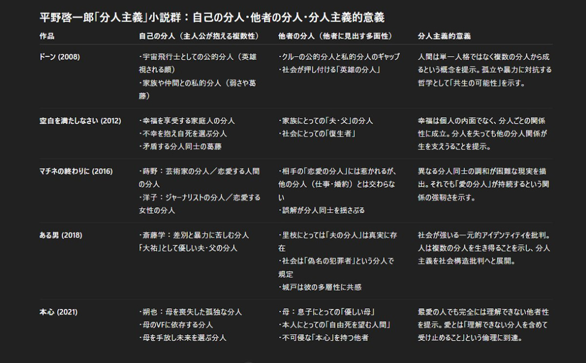 その時に、何故それが難しいのかを考え、人間は一つの人格しか生きられないと耐えられないのでは、と思い至りました。会社での自分、家庭での自分、友人といる自分──複数の人格を切り替えられるバランスがあるから、人は精神的に持ちこたえられるのではないかと。これは分人主義を考える上でのブレイクスルーでした。
