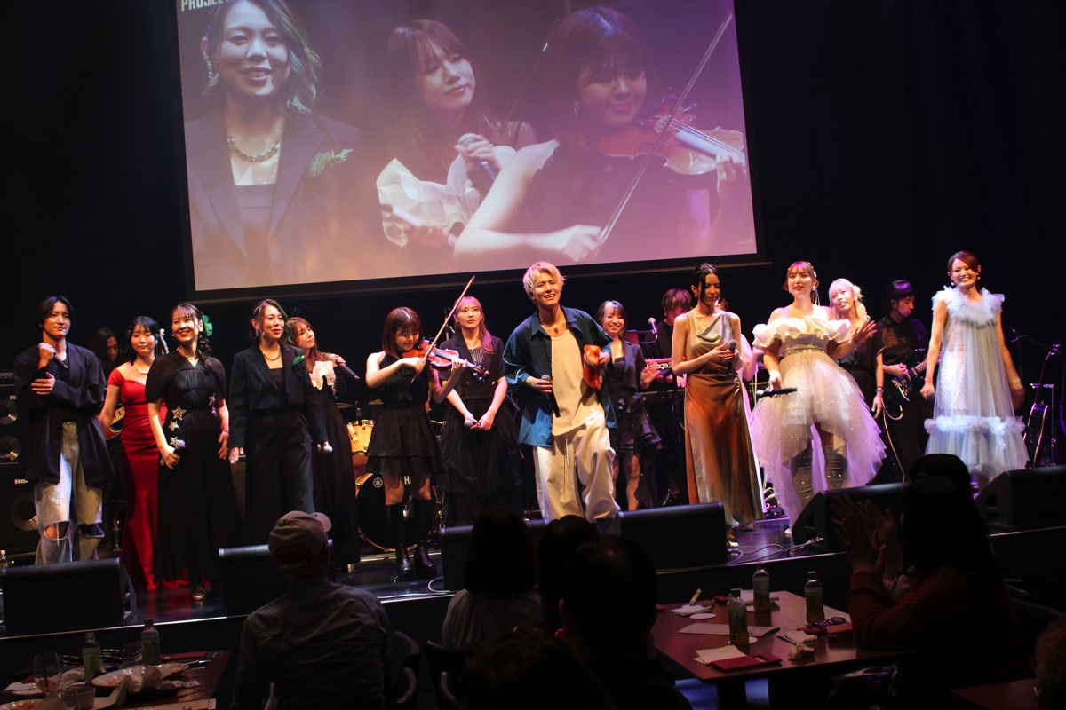 4時間近くに及ぶイベントのラストは、出演者14人による「世界に一つだけの花」(SMAP)のコラボ歌唱。鈴木やALLIEなどがソロパートを担い、さくらviolinが弦楽器としてバンドに華を添えた。