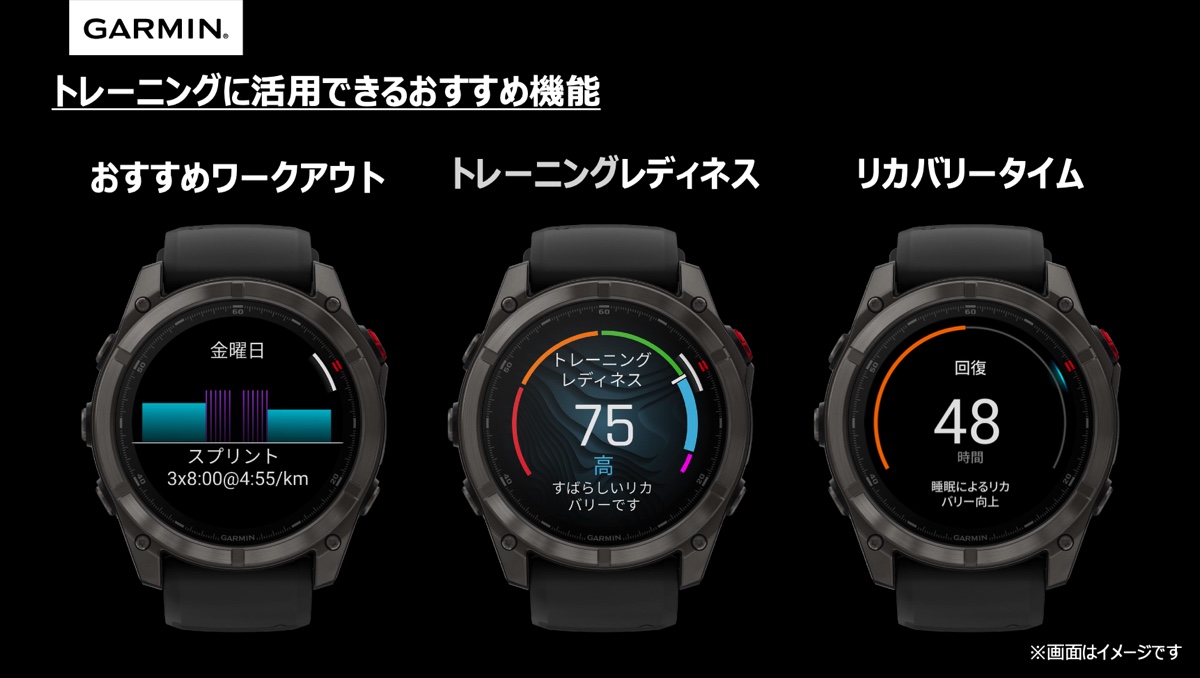 そんな時間のなさに対し、GARMINウォッチはロングバッテリーと、効率的なリカバリーという点でアプローチをしている。
