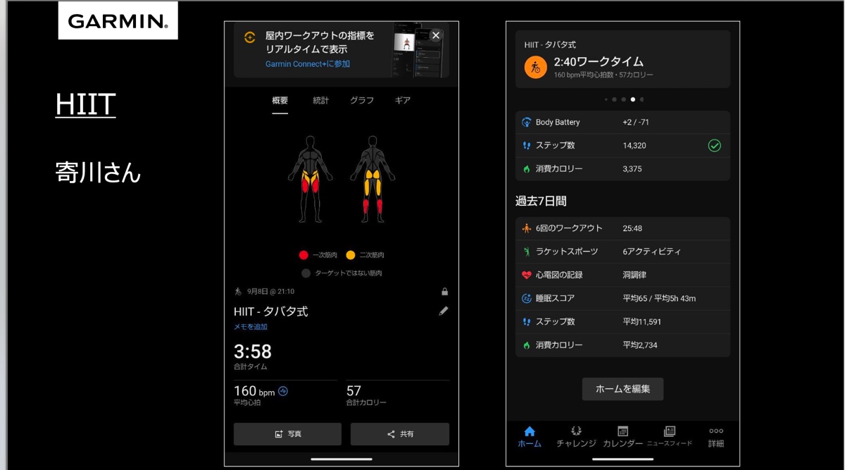 効率がいいのはリカバリーだけではない。寄川氏は、時間がないなか「HIIT」という機能を活用しているようだ。「HIIT」とは高強度の運動と短い休憩を交互に繰り返すトレーニング形式のことで、バドミントンが趣味である寄川氏は、限られた日でしかできないバドミントンのトレーニングを、ここで補っているという。