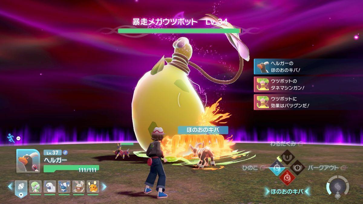 試遊の最後には、「暴走メガウツボット」戦をプレイすることができた。メガウツボットはフィールドに毒をまき散らしながら攻撃を仕掛けてくるため、回避が重要なアクション要素が顕著に表れており、トレーナー戦とは異なる楽しさが味わえる。「ZAロワイヤル」はあくまで1対1で向かい合ったポケモン勝負という印象だったが、暴走メガシンカポケモンはボスとして『Pokémon LEGENDS アルセウス』のキングやクイーンに近いイメージを受けた。