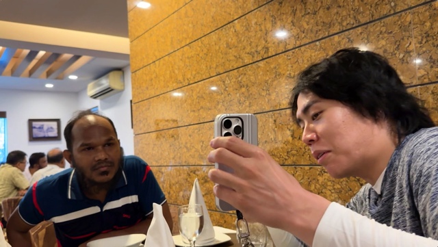 しかし、秘密の場所感あふれるお酒の飲める場所には女性と子どもは入ることすらできないとのこと。それゆえ、まずは道路を挟んで向かい側にある高級料理店で食事をすることに。メニューはどうやらバングラデシュ風の中華料理が中心のようなのだが、その味はなかなかの様子。M!LKの“イイじゃん”を彷彿とさせるポーズで「モジャ(最高)」を連発するなど、陽気な様子を見せていた。