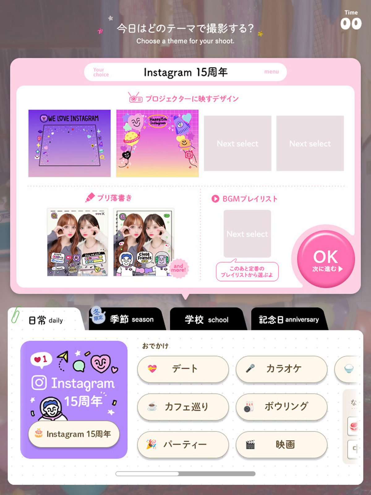 撮影方法:テーマ選択画面にて、「Instagram15周年」を選択
