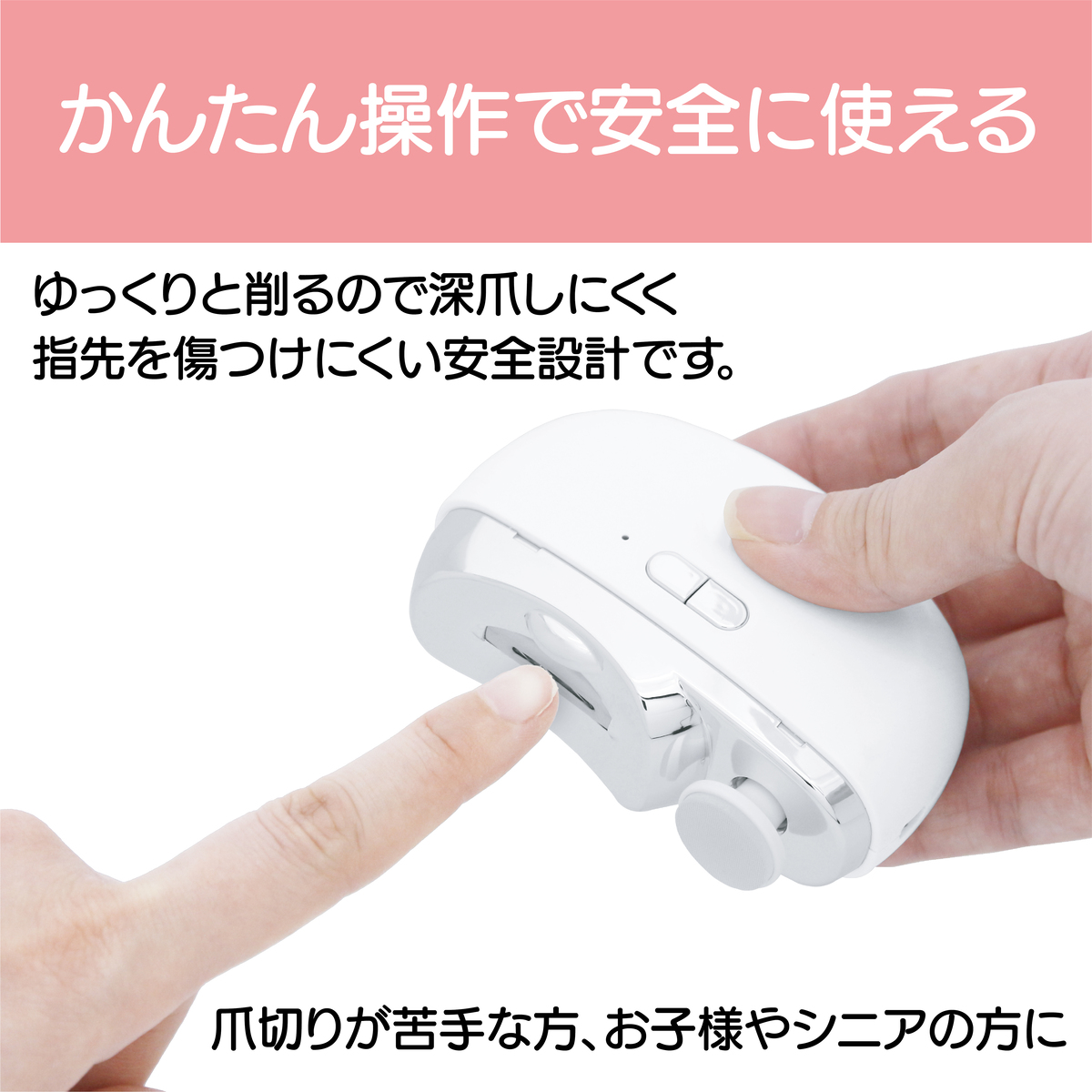 仕上げ用ポリッシャーも搭載しており、削ったあとの爪先をツヤのある仕上がりにできるのが特徴だ。硬い爪にも柔らかい爪にも対応し、家族全員で使用できる。