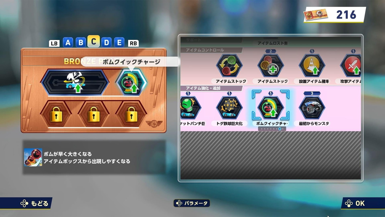 また、マシンに加えてさまざまなバフを付与する「ガジェット」にも注目したい。ドリフト時のチャージ速度やアイテム出現率など、定められたパーツ枠にはめ込む形式で自由に調整できる。筆者の場合、ジャンプごとに素早くトリックを決められる「超高速エアトリック」と、アイテム入手時にボムが出やすくなるパーツを組み合わせ、「ダッシュを繰り返して一気に先頭に躍り出た後、背後のライバルを爆破で徹底的に牽制する」戦法をとってみた。