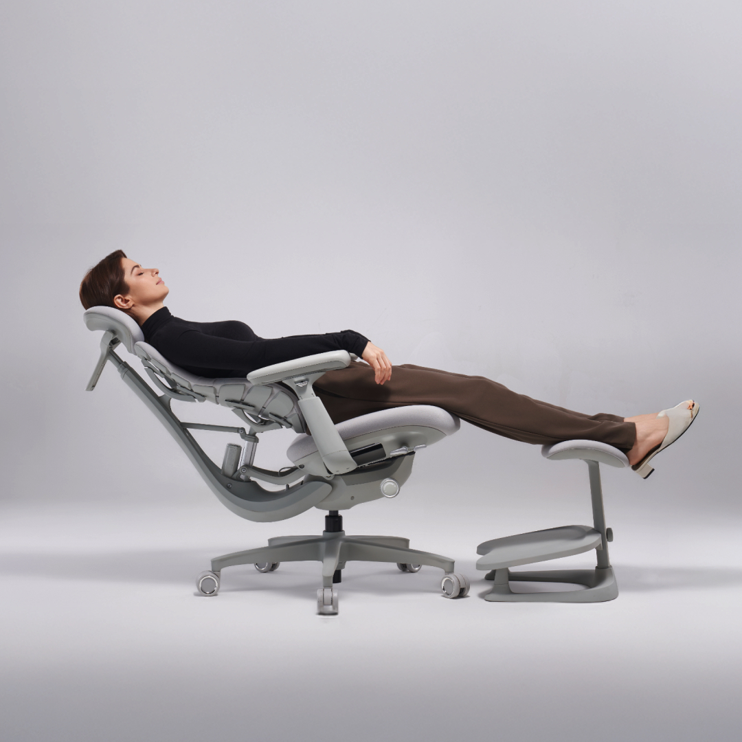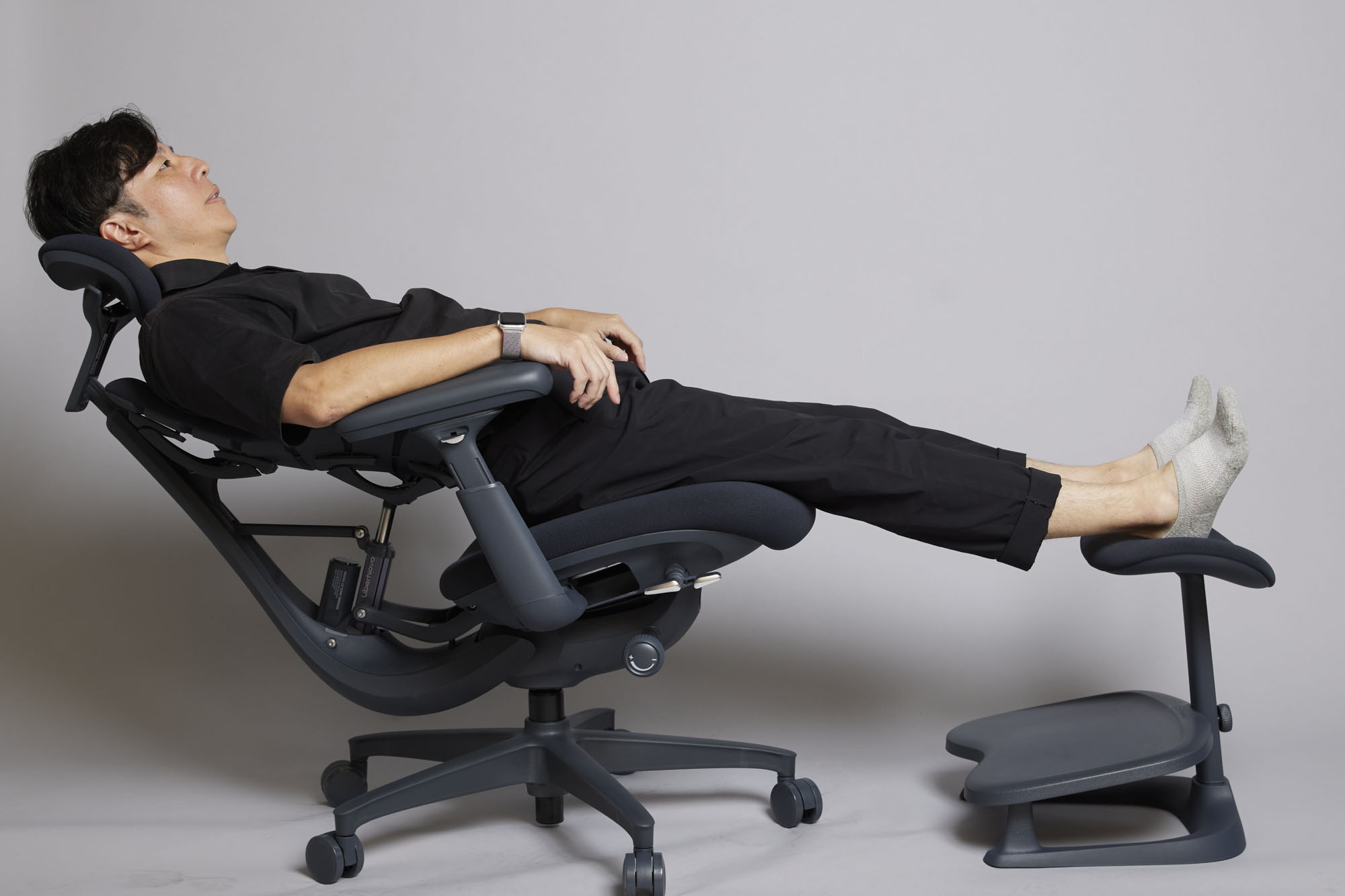 「たとえば、在宅ワーク中に軽く休憩を入れようとするじゃないですか。そうすると、通常はソファやベッドに移動することになるわけですが、むしろ、『LiberNovo Omni』でストレッチをしている方が断然カラダがラクなんですよね。カラダに寄り添うように設計されていますから。『LiberNovo Omni』をリクライニングポジションにして仮眠する際は付属のオットマンも大活躍です。ただ、就寝と異なるのは寝返りがうてないこと。それゆえに、仮眠用としては最適な設計といえますね」