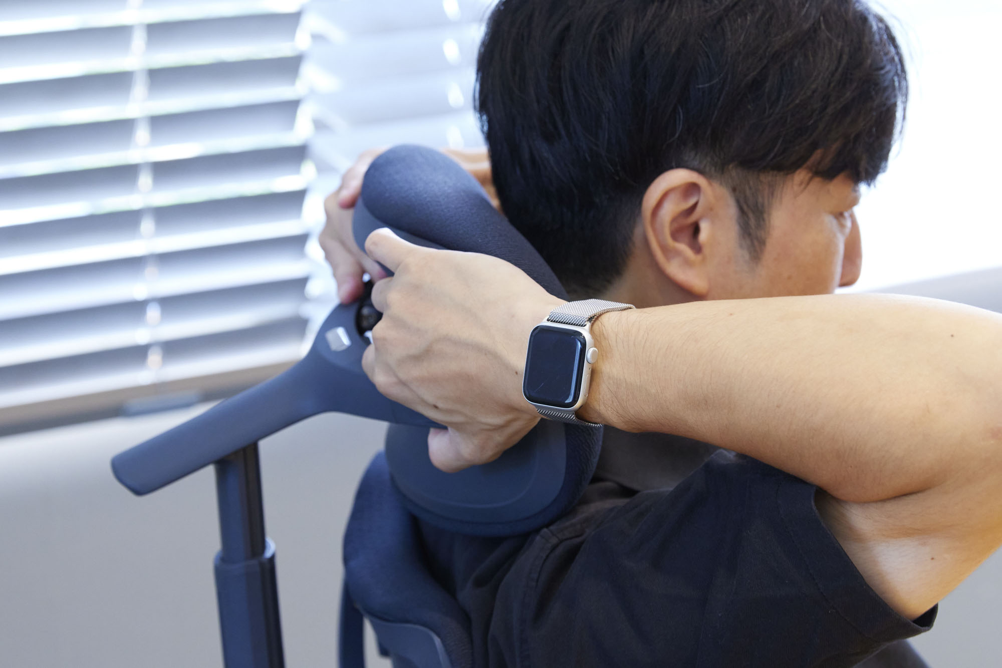 水谷氏が『LiberNovo Omni』を使用してみて最初に気づきを覚えたのが、ネック部分を自分の首に合わせるというスタートの作業だ。「実際にセットしてみると、なるほどね、という感じです。PCのモニターが真っ直ぐ見えるのです」