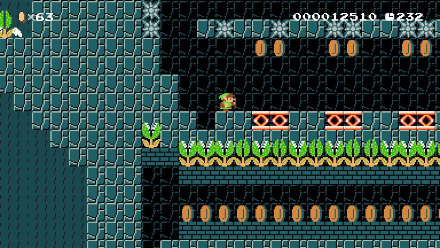 いまにして見ると、相当に浮いたコラボレーションであるが、こんな予測不可能な企画も実現してしまうのが初代『スーパーマリオメーカー』の面白いところでもあった。なお、千棘は見た目とジャンプ時の効果音を除き、ほかは『スーパーマリオブラザーズ』のデフォルトに準じる仕組みである。ジャンプ音だけ変わるのは“ジャンプ”出身のキャラクターだけに、といったところだろうか。