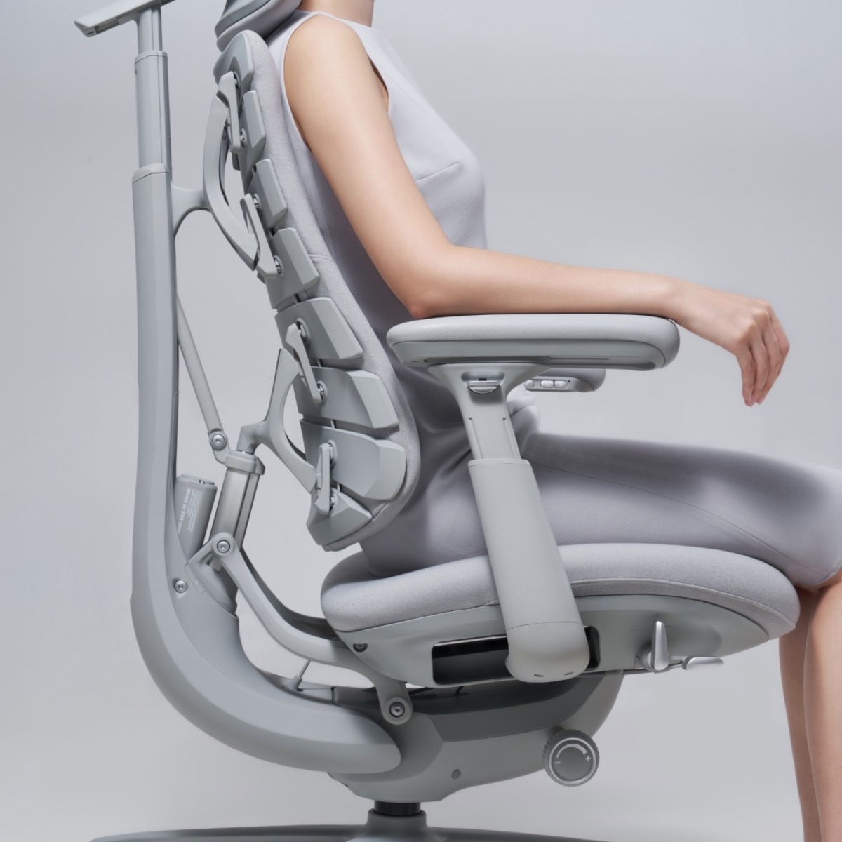 一人ひとり異なる背骨のカーブを正確に再現し、まるでオーダーメイドのような座り心地を実現する。さらに、ヘッドレスト・バックレスト・シート・アームレストの4部位が電動連動し、姿勢の変化を検知して自動で追随。前傾で集中しているときも、休憩で体を預けたときも、サポートの位置がずれることなく全身を包み込むように支える。