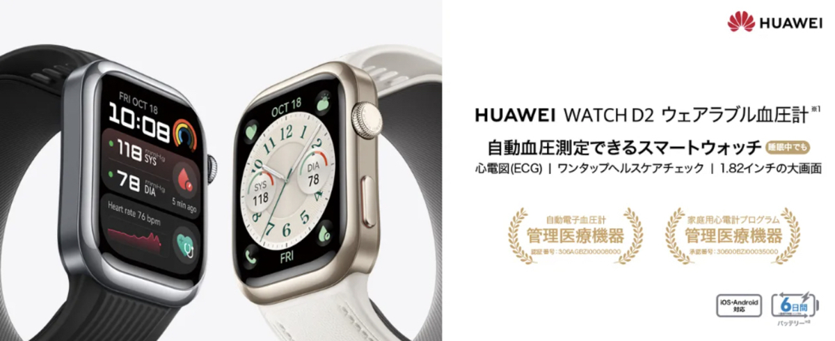 ・詳細情報:https://consumer.huawei.com/jp/offer/huawei-wearable/watch-d2-buy/