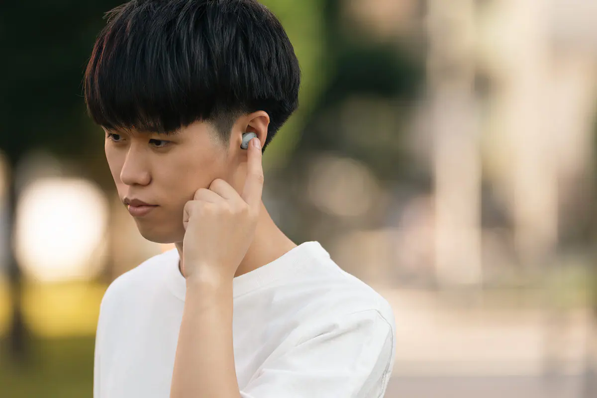 独自アルゴリズムによるノイズキャンセリングを搭載し、遮音性と自然な音質を両立。周囲の音を取り込む「アンビエントモード」も備え、左側イヤホンのワンタッチで簡単に切り替え可能。通勤電車内でのアナウンス確認など、日常のあらゆるシーンで快適に使える。