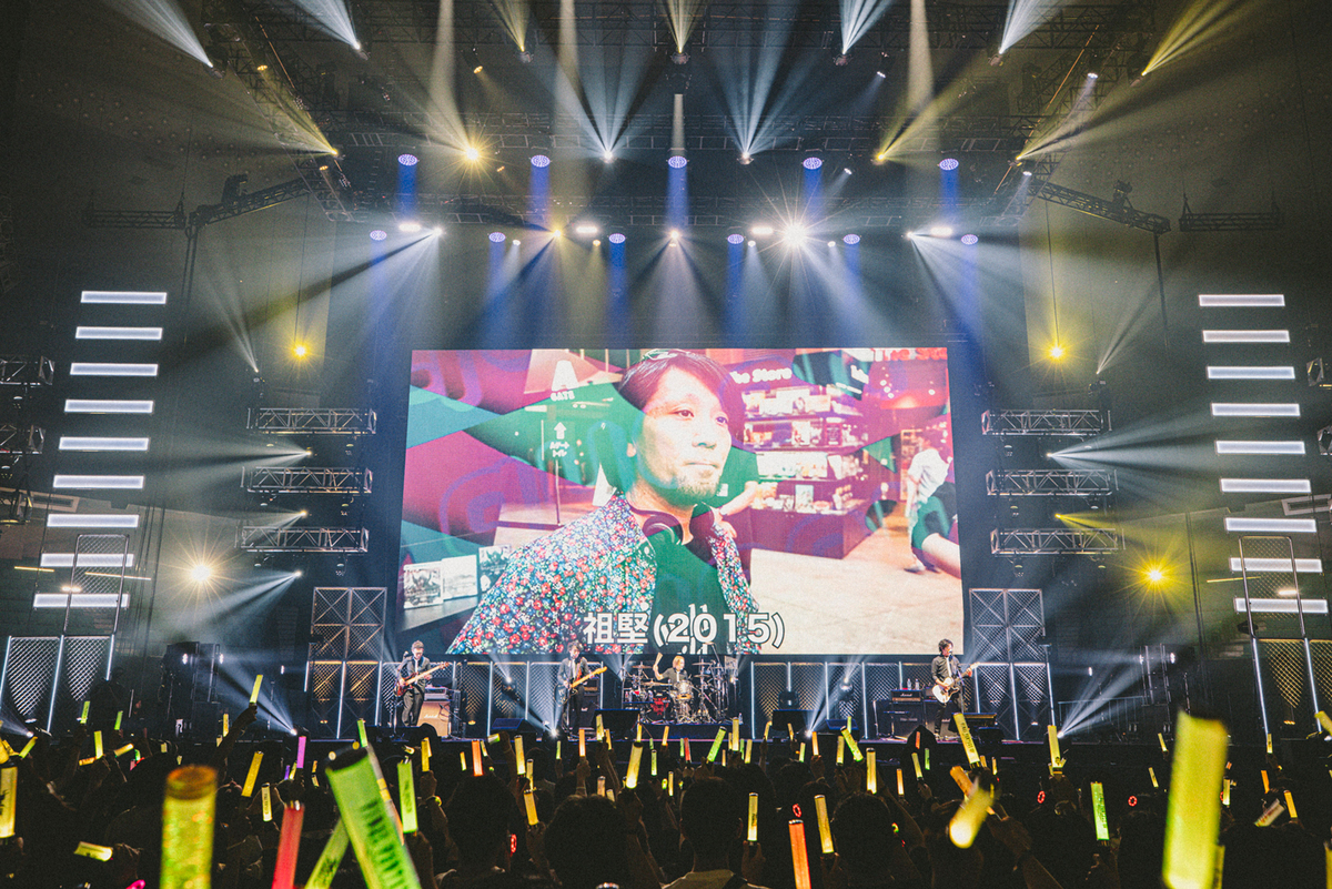 続く「Ride the Rhythm ~至天の座アルカディア:クルーザー級~」では、サングラスをかけた祖堅が、ギラギラのジャケットを身につけ、会場にはミラーボールが回り、武道館は『サタデー・ナイト・フィーバー』状態に。その後も「どんどん階層を上げて行こう」と言って、『黄金のレガシー』のストーリーになぞらえて曲を繰り出していった。