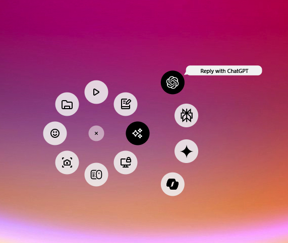 このActions Ringを押すと、『MX Master 4』を接続しているデバイスの画面にActions Ring(UI)が表示される。