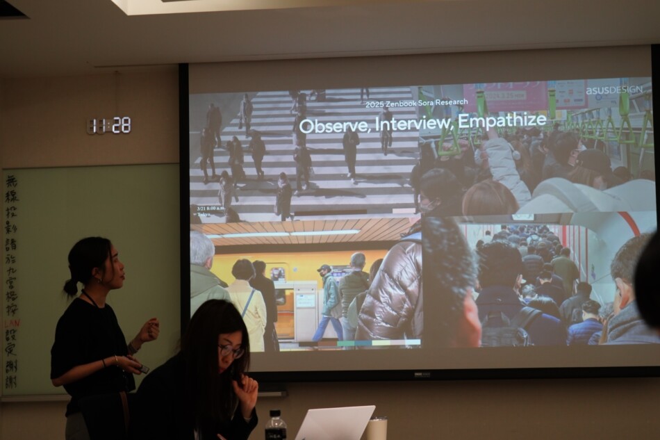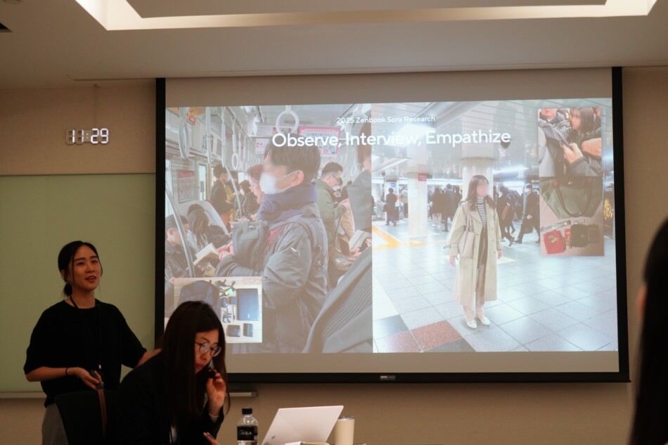 開発の一環として、2025年初頭にはASUSのデザインチームが東京にて「Zenbook SORA Research」を実施。実際にASUSのデザイナーが東京オフィスの社員と一緒に朝の満員電車に乗り、電車の混雑度や荷物の重さを自ら体験し、通勤者がどのようにPCを持ち運び、どんな不便を感じているのかを直接知ることができたという。