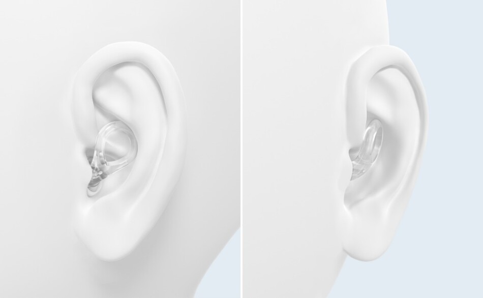 形状は自然な装着感を追求した「しずく型」となっている。滑らかな曲線が耳のくぼみにフィットし、落下の心配なく安心して使用できる。