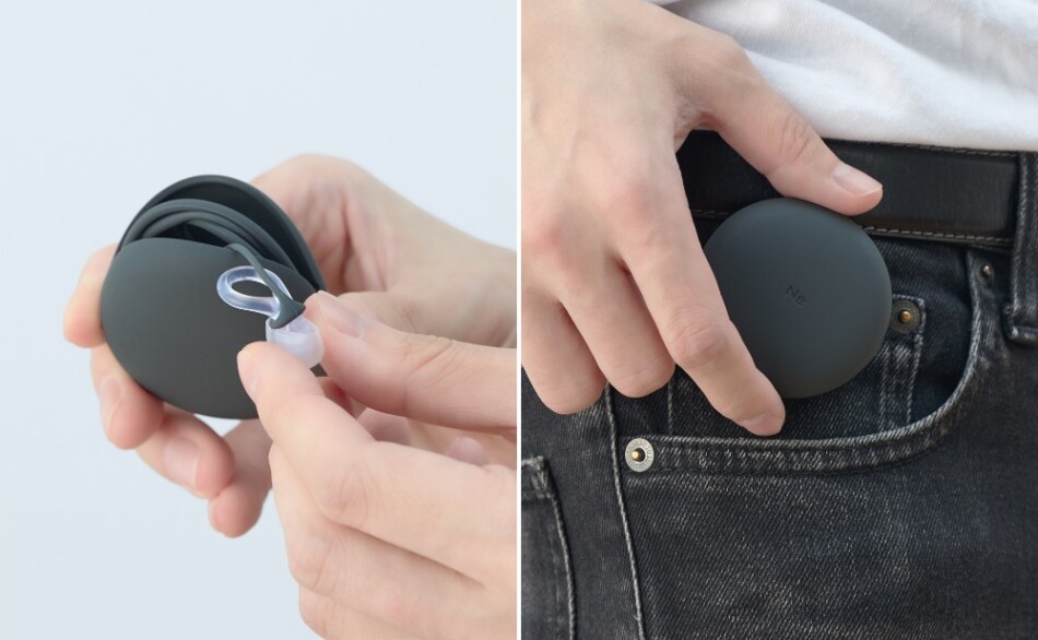 イヤープラグとコネクターコードを収納できるシリコンケースも用意されている。側面を押すだけで開閉でき、そのまま収納できる作りだ。