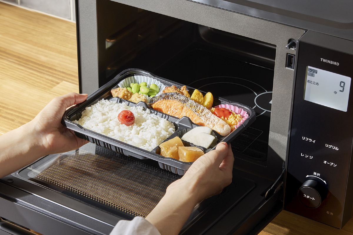 近年増加する中食ニーズに応えるべく、レンジとオーブンの加熱技術を自動で最適化し、惣菜の温め直しを一台で完結させるモデルとなっている。