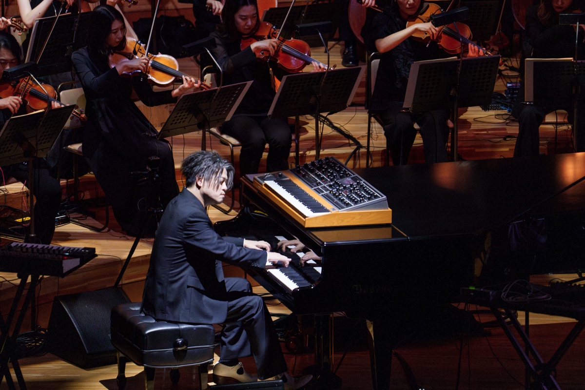 前半の最後には、渋谷が作曲したNHKスペシャル「臨界世界」のメインテーマを渋谷とオーケストラで演奏・コンサートマスターの成田達輝が圧巻のソロを披露した。