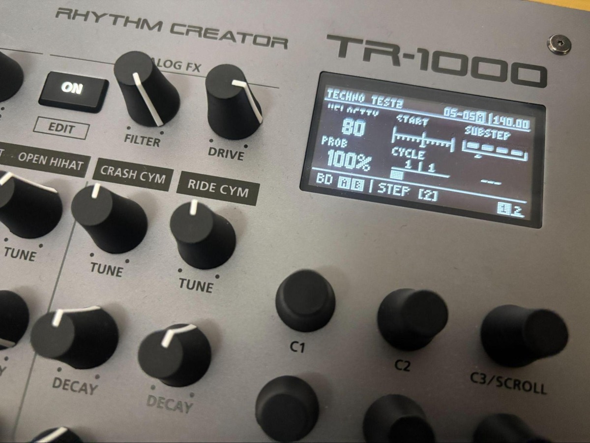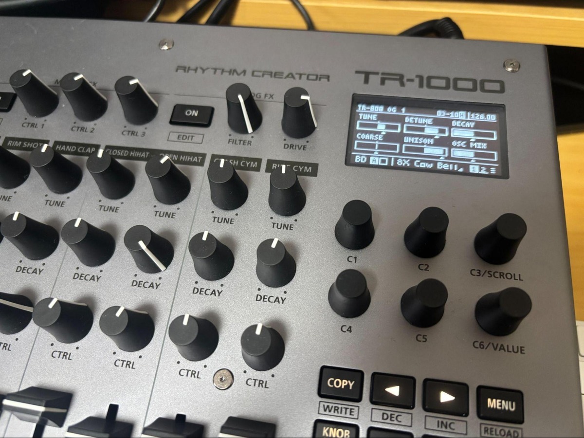 実際に使ってみて、リズムマシンとしての完成度の高さを実感したが、多機能でありながら、新たな伝説の機材となる要素が眠っているようにも感じた。その要素が見つかったとき、TR-1000は真に"単なるリズムマシン"を超えた存在になるのではないだろうか。