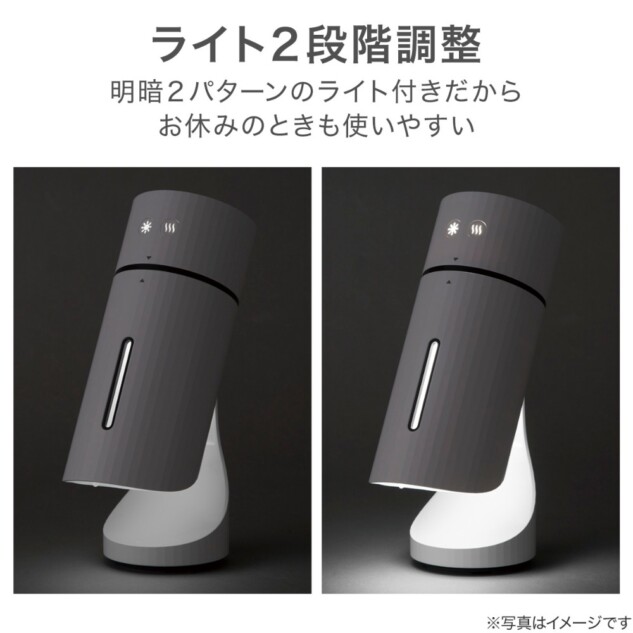 加湿以外にも明暗2段階のライトもついている。ベッドサイドのナイトライトとしても使用できる作りだ。