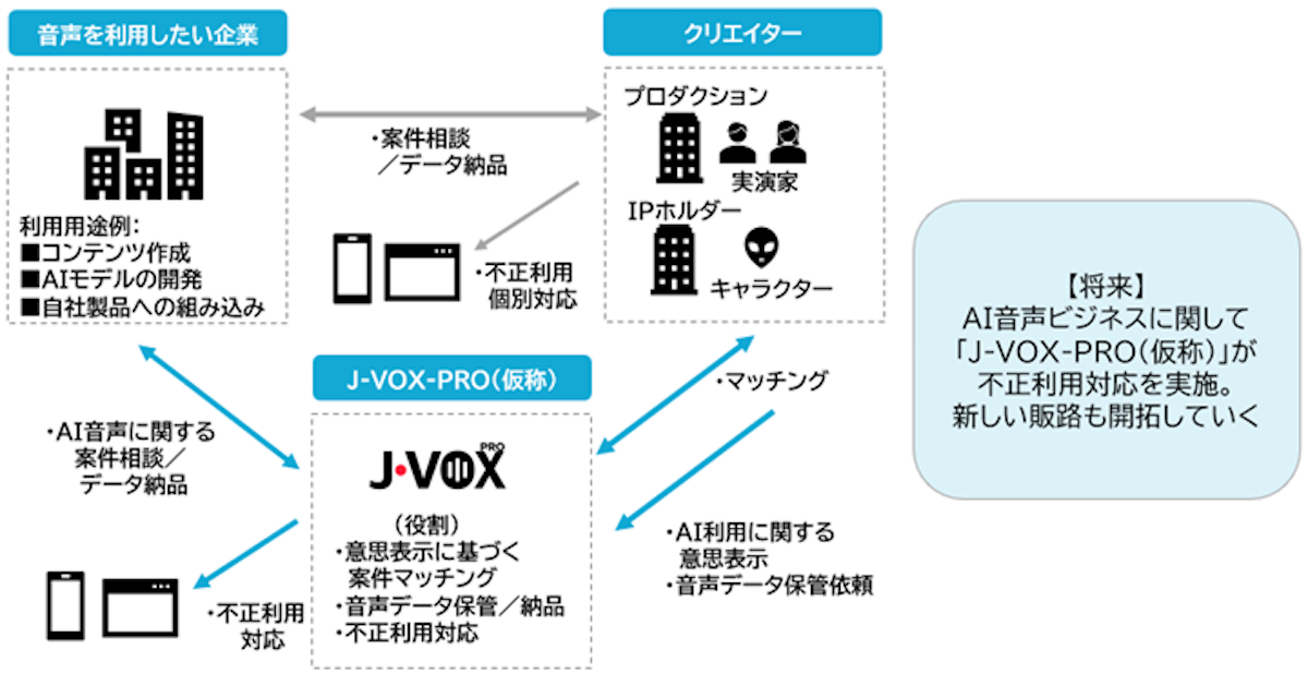 利用は法人を対象としており、企業や団体は所定の料金を支払った上で、合意された用途の範囲内で音声データを利用可能だ。料金や利用条件は、実演家本人や所属事務所との協議を経て透明性の高い形で決定される。