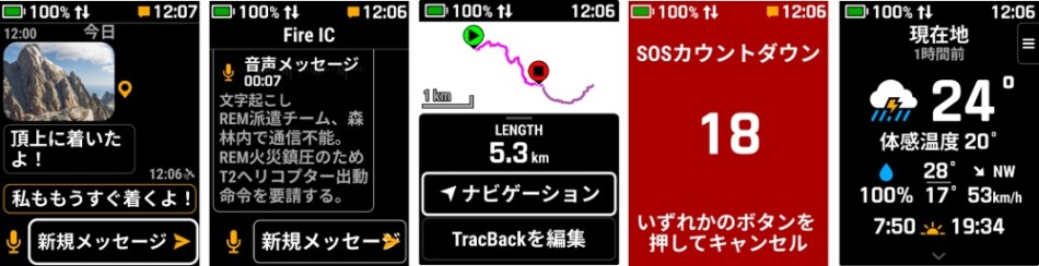 さらに専用アプリ「Garmin Messenger App」を使用し、写真や音声メッセージの送信が可能となった。テキストメッセージもこれまでより上限が増え、最大1600バイト(日本語の場合533文字)まで1つのテキストとして送れるようになる。