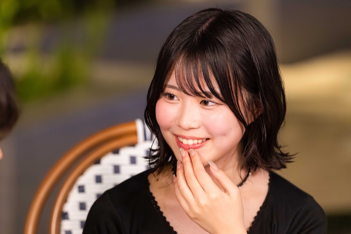 まずは、ここね(大森心音)がとうい(木村斗一)と隣同士の席に。旅の序盤から、とうい一本に気持ちを絞ってきた、ここね。明日の告白に向けてもすでに臨戦体制ではあるものの、肝心のとういは彼女の好意にまったく気づいていなかったという。無理もない。ふたりが最後に会話をしたのは、初日昼のこと。この空気を読んで、周囲に座っていたかなた(陣野奏汰)&りりか(島津凛々華)が席を外したものの、1日ぶりの会話で話題となったのは、お互いの趣味などの初歩ステップ。おそらくだが、今回の旅でカップル成立するには、やや時間が足りないことだろう……。