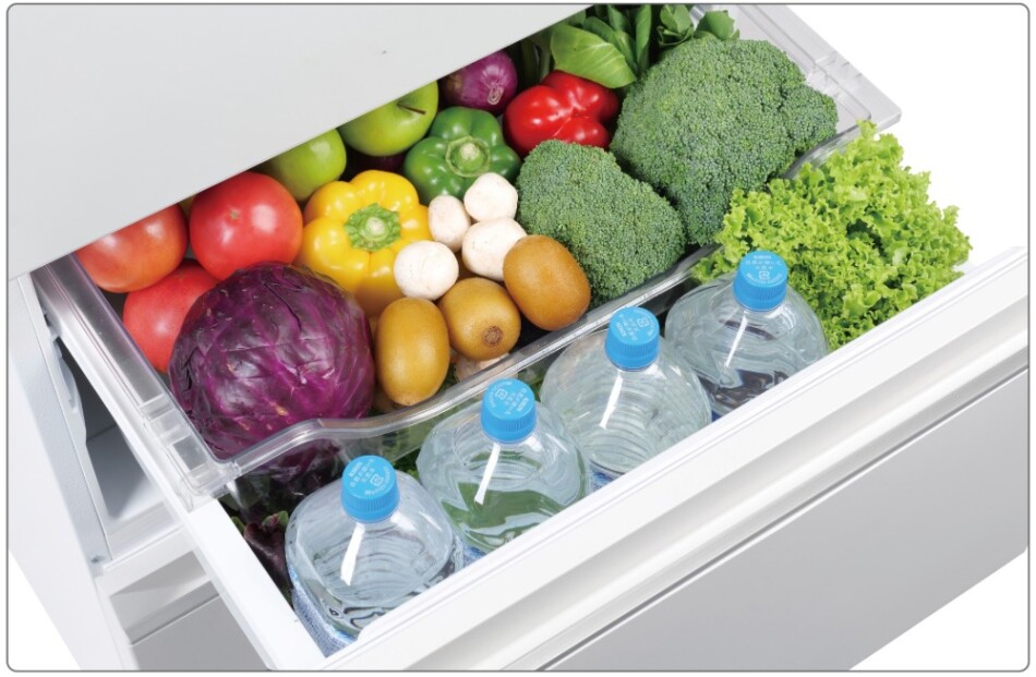 5ドア冷蔵庫で容量は401リットルと二人暮らしは勿論、ファミリー層もカバーする大容量ながらも幅は60cm、そして奥行きも60cmを達成したこれまでにないコンパクトさが特徴の冷蔵庫だ。このクラスは各社ともに幅60cmは達成しているが奥行きは60cm+αがあるのがこれまでだったが、同社はこの数センチの壁を超えてきた。家電量販店などの広大なエリアで見ていると数センチというと大したことがないように感じるが、実際に狭小スペースに置くとこの僅かな違いが、キッチンでの圧迫度や物理的な移動制約を変えてくれる。