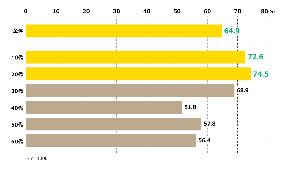 「あなたは、対話型AIに対して気軽に感情を共有できますか」と尋ねたところ、全回答者の64.9%が「はい」と回答した。この質問を年齢層別に集計すると、10代だと72.6%、20代だと74.5%が「はい」と回答し、若年層ほど対話型生成AIと感情的につながっていることがわかった(30代で68.9%、40代以降は50%代になる)。