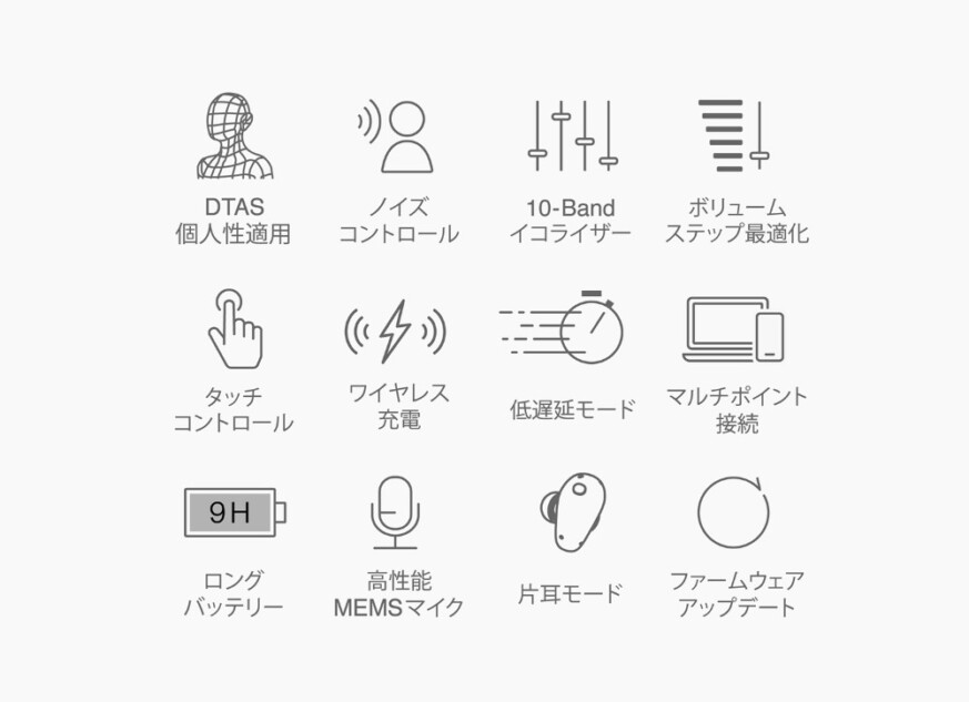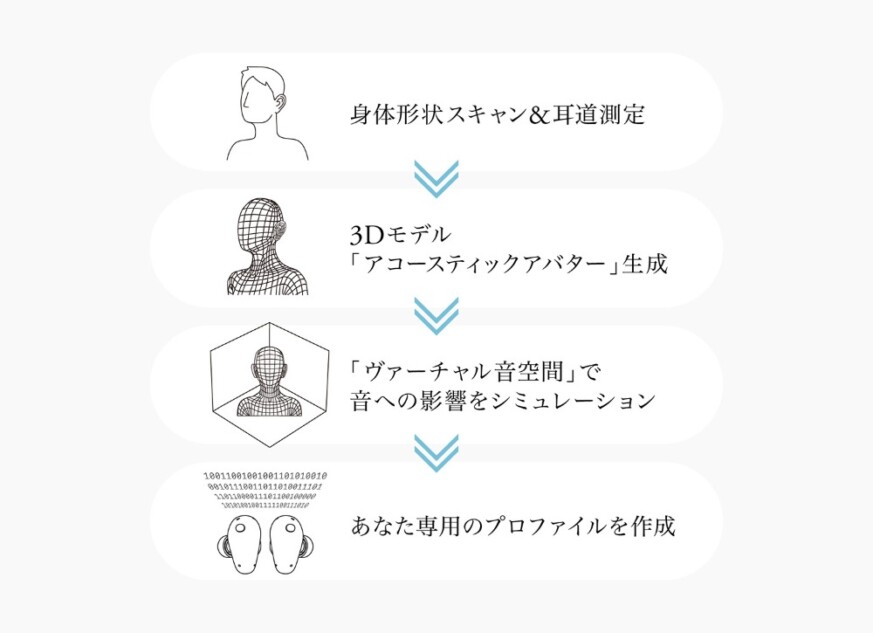 さらにパーソナライズ技術「DTAS」を採用し、個人の身体形状に合わせた音を作成する。