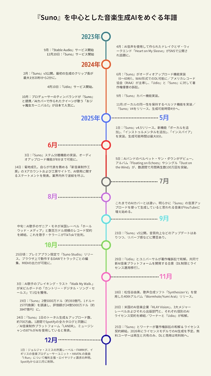 ――そして10月に『Udio』がワーナーとライセンス契約を締結したという大きなニュースがありました。11月には『Suno』が続き、その後もいわば“適法化”が進んでいます。