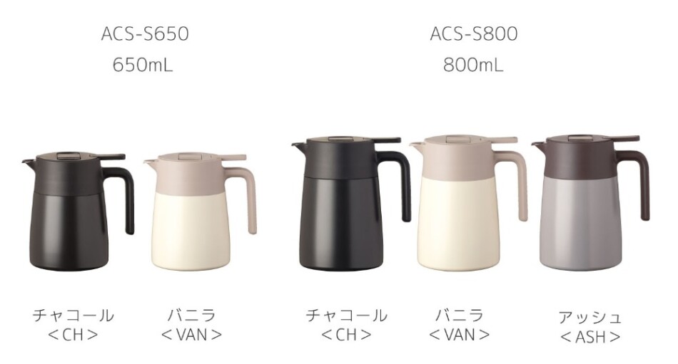 容量は650mL、800mL、1100mLの3サイズ展開だ。カラーはチャコール・バニラ・アッシュの3色が用意されている。(※650mLにはアッシュ無し)