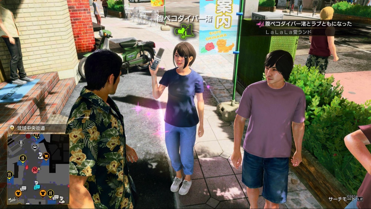 そのほかにも、道中で手に入れた服装で桐生を着飾ることができる「コーディネート」や、ガラケーの赤外線通信を利用したNPCのフレンド集めができる「LaLaLa愛ランド」など、多種多様なコンテンツがあり、ここでは語り尽くせないほどだ。