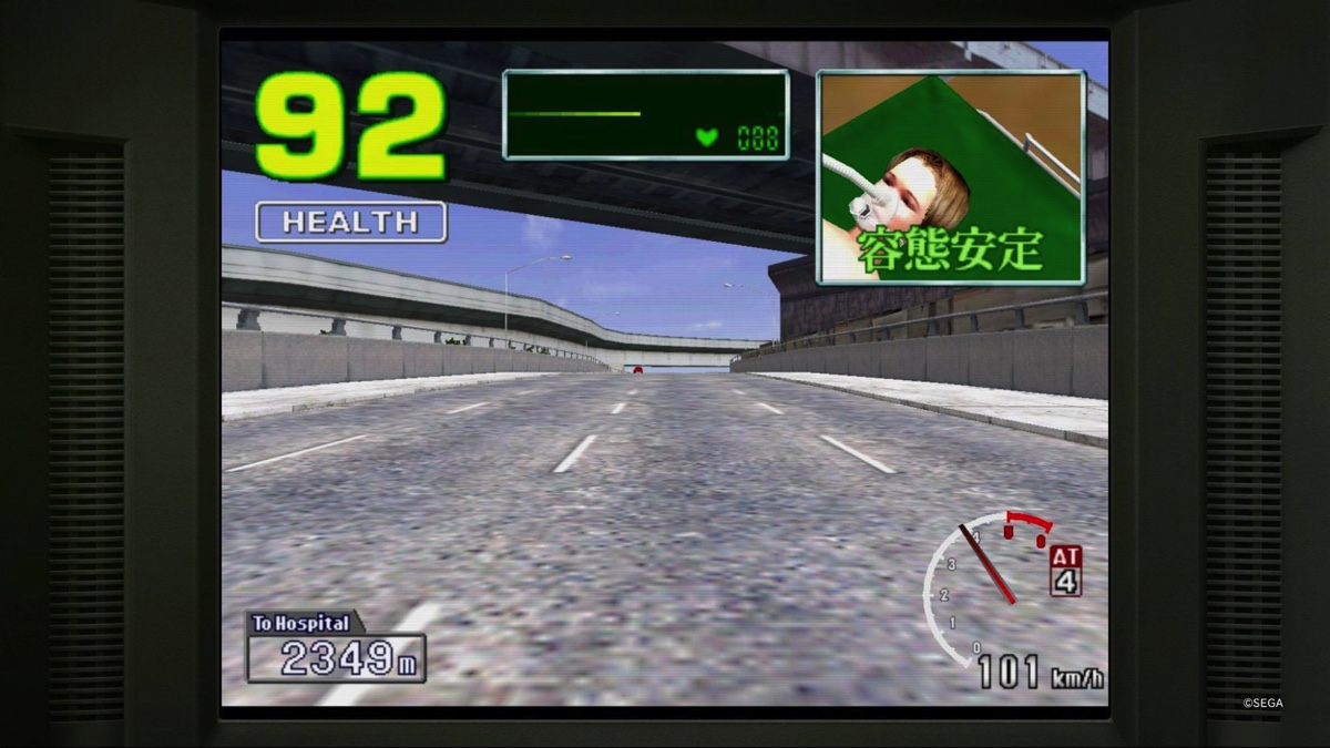 また『救急車』というゲームも面白かった。こちらは超シンプルなタイトルの通り、救急車を運転して時間以内に患者を病院に送り届けるという『クレイジータクシー』に近いゲームである。ぶつけるたびに患者の容体が悪くなっていくなど、現代のセンスでは考えられないようなギリギリのノリが全編に漂っている凄まじいゲームだった。